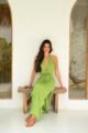 O Vestido Nathalia traduz a singularidade da mulher que caminha com elegância natural. Sua modelagem com amarração frontal abraça a silhueta com delicadeza, enquanto o caimento solto oferece leveza e liberdade a cada movimento. Seu tom verde, combinado ao tecido levemente luminoso, transmite a suavidade dos dias ensolarados de verão. Um brilho sutil que acompanha momentos de frescor, charme e autenticidade.