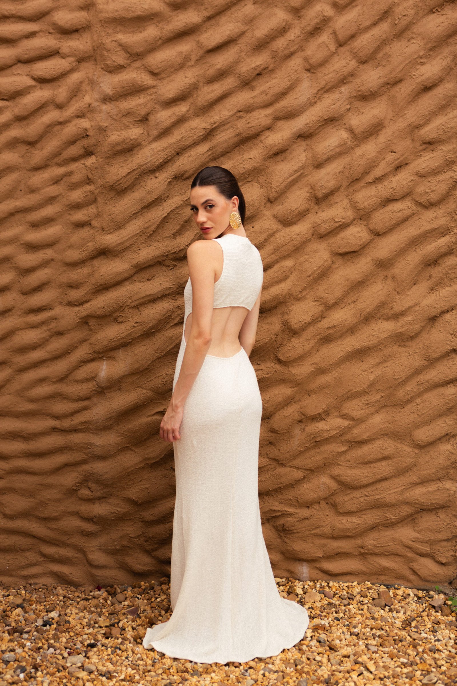 Com estética natural e elegância contemporânea, este vestido curto é uma peça essencial para os dias quentes. Confeccionado em tecido leve com textura canelada, ele se ajusta ao corpo de forma confortável, valorizando a silhueta com simplicidade e frescor.